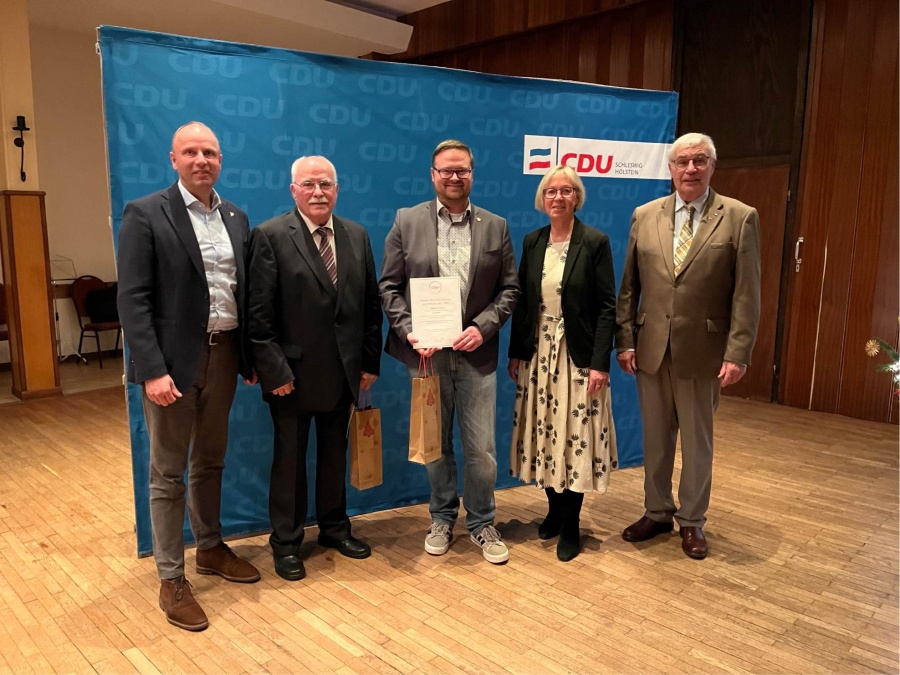 v.l. Andreas Hein mdl, Wolfgang Zeltmann, Adrian Schulz, Petra Nicolaisen mdb, Holger Schwien Vors. CDU OV Kropp